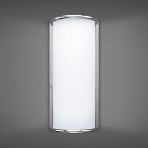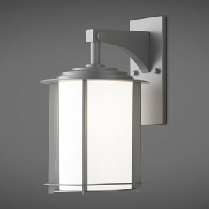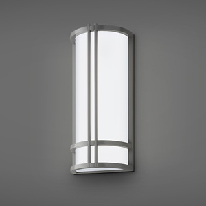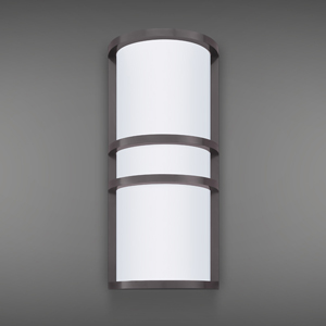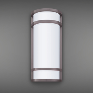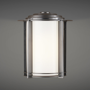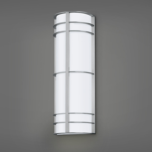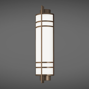 Opal Matte Acrylic Cylinder w/ Fins and Round Roof, Suspended by Arm Mounted to Rectangular Backplate